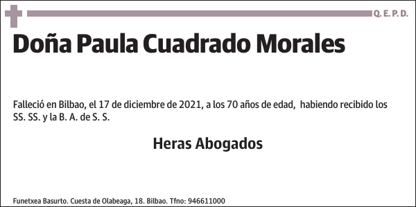 Falleció en Bilbao, el 17 de diciembre de 2021, a los 70 años de edad, habiendo recibido los SS. SS. y la B. A. de S. S.