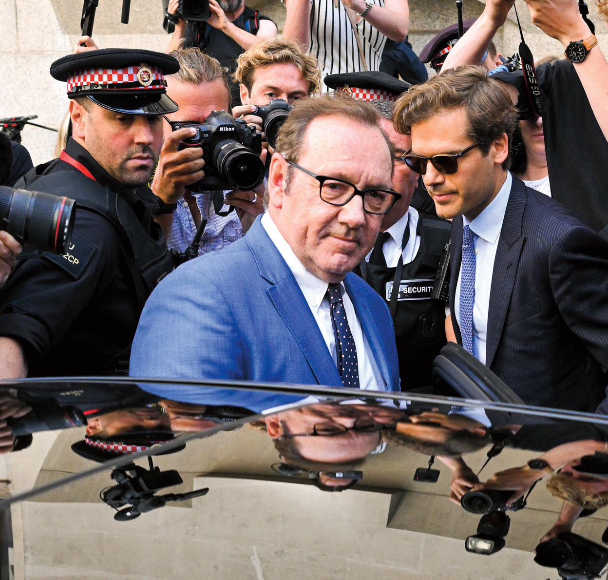 En cuanto me pongan en libertad en Londres, ciertas personas volverán a ofrecerme papeles. En el mismo minuto», dijo Kevin Spacey hace unas semanas. No se sabe si su teléfono sonó el 26 de julio a la salida del Tribunal de Southwark, en Londres. Poco antes, el actor se había estado secando las lágrimas de los ojos cuando, tras más de doce horas de deliberación, un jurado de doce miembros lo absolvió de tres cargos de acoso sexual y uno de agresión sexual. El acusado Spacey, que ese día cumplía 64 años, abandonó la sala en libertad. Spacey, famoso desde que protagonizó en 1995 la película Sospechosos habituales, [en la imagen de apertura] a la salida del tribunal de Londres que lo absolvió. Días antes había dicho: «Los medios han hecho lo posible para convertirme en un monstruo, pero de la gente no he recibido otra cosa que afecto».
