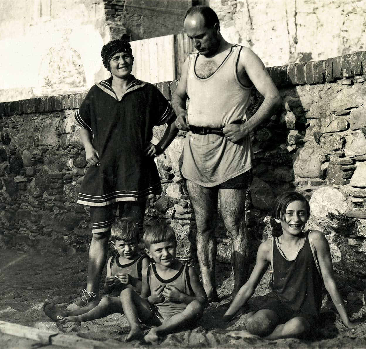 El 1923, un año después de tomar el poder, Mussolini se dejaba fotografiar de vacaciones con su esposa, Rachel, y sus hijos, Bruno, Vittorio y Edda, en Levanto (Liguria). Por primera vez, Il Duce se mostraba con un líder familiar. Como todos los dictadores, estaba obsesionado con controlar su imagen pública y censuró numerosas fotografías que lo mostraban con gestos inapropiados o situaciones poco favorecedoras. Ese control no ha impedido que con los años hayan aparecido nuevos documentos que ayudan a recomponer la historia.