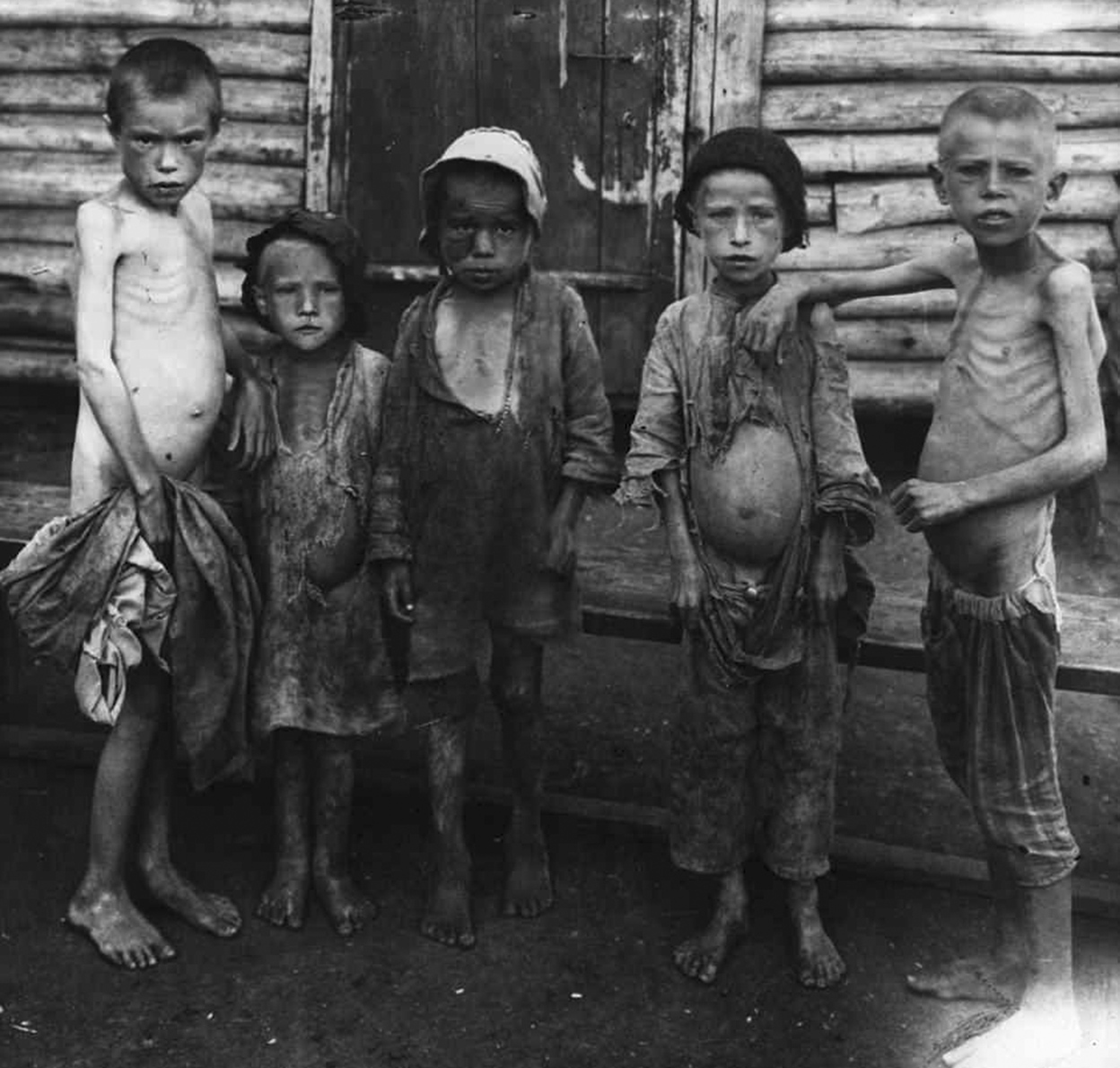 Un testigo ruso recordaba a los niños ucranianos que vagaban por las calles lentamente, exhaustos, en un estado de alucinación: «Todos iguales; sus cabezas, hinchadas como sandías; sus cuellos, delgados como los de una cigüeña; la piel, pegada a los huesos como una gasa amarillenta. Y los rostros, avejentados». Otro testigo no podía olvidar a una madre con un bebé en brazos. «Estaba de pie a un lado del camino y su pequeño bebé esquelético, en vez de mamar del pecho seco, se chupaba los nudillos».