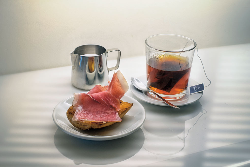 «Un té negro con una nube de leche fría. Una tostada con aceite de oliva y jamón del bueno cuando lo hay. Y, cuando no, con jamón no tan bueno [ríe]».