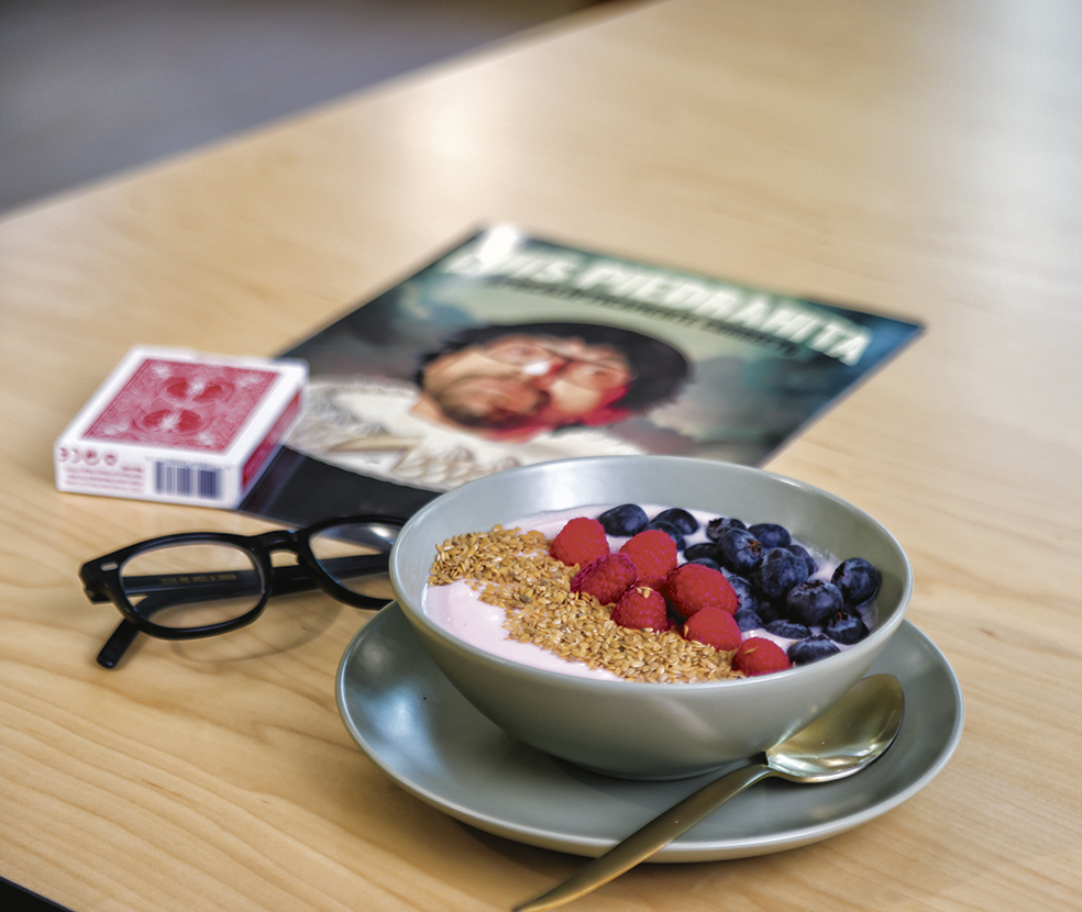 «Yogur fresquito con frutos rojos, porque son antioxidantes: le echo semillas para ver si nace algo dentro de mí [ríe]. Y un café con leche».