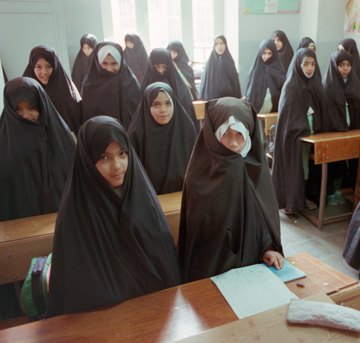 Aún no había aprendido a multiplicar cuando, jugando en el parque con mi padre, un policía de paisano se nos acercó y le reprochó que ya era lo suficientemente mayor para cubrirme fuera de casa. No había terminado la primaria cuando comenzaron las interrupciones en nuestras clases para revisarnos físicamente y llamar a nuestros padres si llevábamos algo de color bajo el velo, algún zapato llamativo o algún objeto inmoral como casetes de música o revistas occidentales.
